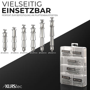 ✅ KLRStec MONTAGE SET FÜR HOHLRAUMBEFESTIGUNG - Hohlraumdübel Set inkl. Montagezange + 24 Metall Dübel für Hohlraumwände: M4X32mm (4 Stk.), M4x38mm(4 Stk.), M5X37mm (4Stk.), M5x52mm (4 Stk.), M6x37mm(4 Stk.), M6x52mm(4 Stk.)